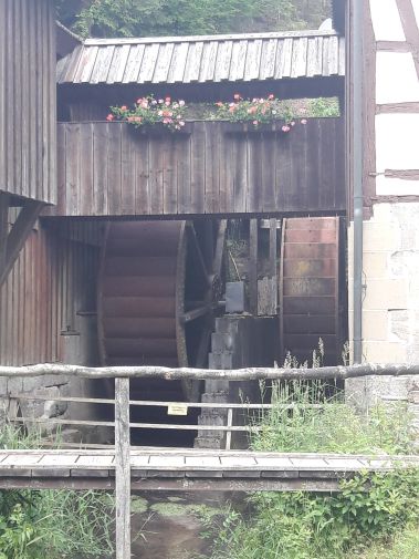 Unser Bus brachte 50 gutgelaunte Wanderer des SSR und des Albvereins direkt zur Heinlesmühle, dem Start- und Zielpunkt unserer Rundwanderung. Von den Schäden des Hochwassers war auf den ersten Blick nach einem Jahr nichts mehr zu erkennen. Die Mühle wurde von der Besitzerfamilie Fürstenauer wieder liebevoll restauriert. Leider wurde aber die kombinierte Mahl- und Sägemühle mit zwei Wasserrädern durch das Hochwasser doch derart zerstört, dass diese nicht mehr wirtschaftlich sinnvoll instandgesetzt werden konnten.